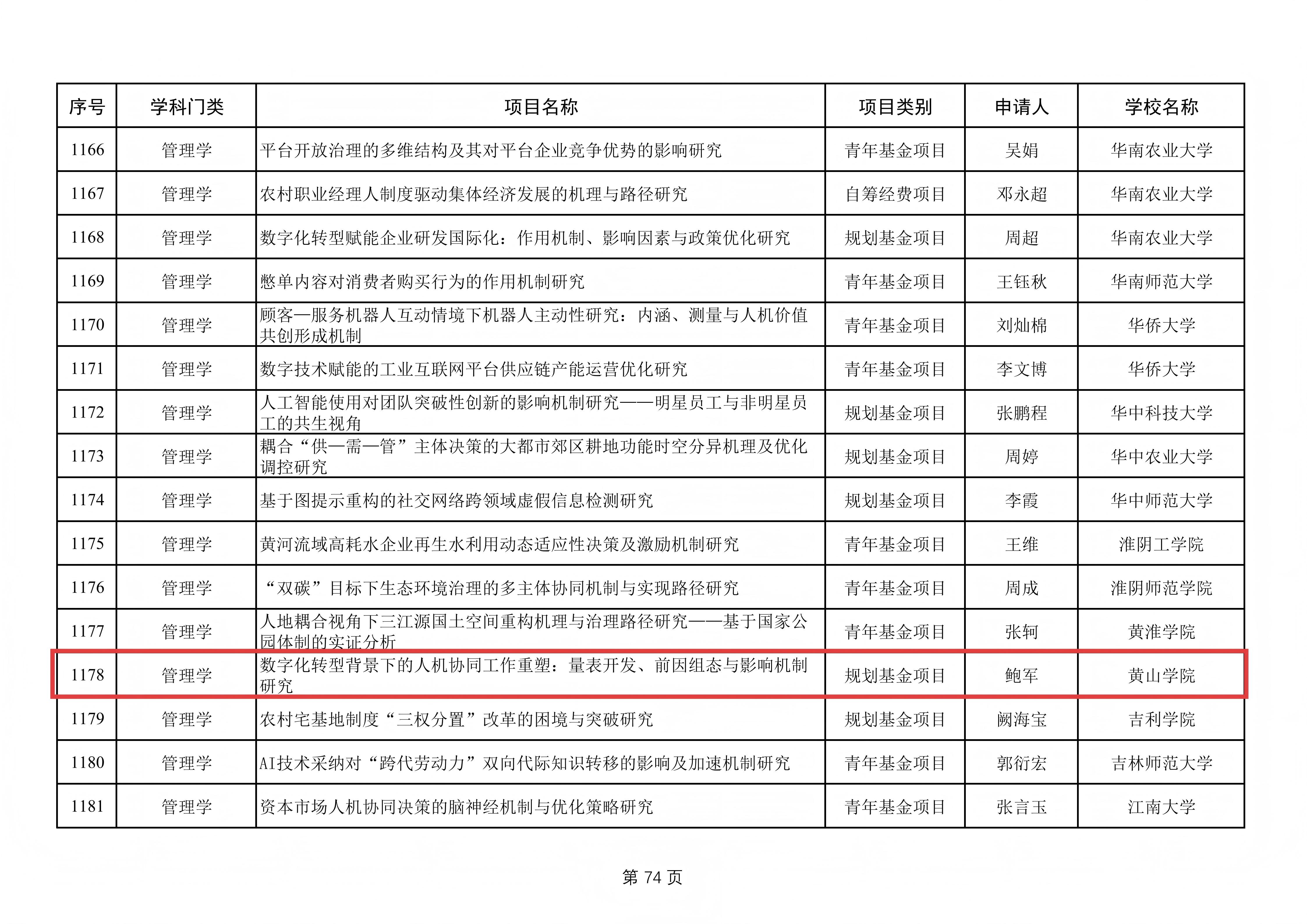 管理学 | 数字化转型背景下的人机协同工作重塑:量表开发、前因组态与影响机制 | 规划基金项目 | 鲍军 | 黄山学院 |